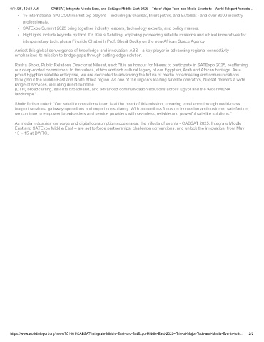 https://www.worldteleport.org/news/701061/CABSAT-Integrate-Middle-East-and-SatExpo-Middle-East-2025--Trio-of-Major-Tech-and-Media-Events-to.h… 2/2