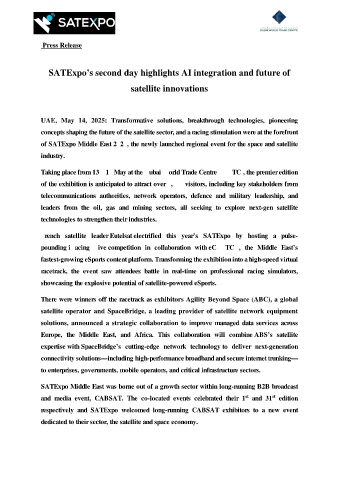 respectively and SATExpo welcomed long-running CABSAT exhibitors to a new event
