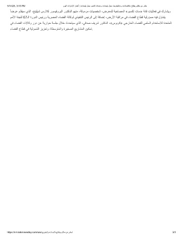 ﻲﻓ ءﺎﺿﻔﻟا تﻻﺎﻛو رود نﻋ ﺔﯾراوﺣ ﺔﺳﻠﺟ لﻼﺧ ثدﺣﺗﯾﺳ يذﻟا ،ﻲﻗدﺻ فﯾرﺷ روﺗﻛدﻟا ،«سوﺑوﻛ» ﻲﺟرﺎﺧﻟا ءﺎﺿﻔﻠﻟ ﻲﻣﻠﺳﻟا مادﺧﺗﺳﻼﻟ ةدﺣﺗﻣﻟا