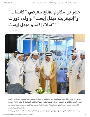5/14/25, 3:15 PM تﺳﯾإ لدﯾﻣ وﺑﺳﻛإ تﺎﺳ" تارود ﻰﻟوأو "تﺳﯾإ لدﯾﻣ تﯾرﻐﯾﺗﻧإ"و "تﺎﺳﺑﺎﻛ" ﻲﺿرﻌﻣ ﺢﺗﺗﻔﯾ موﺗﻛﻣ نﺑ رﺷﺣ" - Nas News UAE