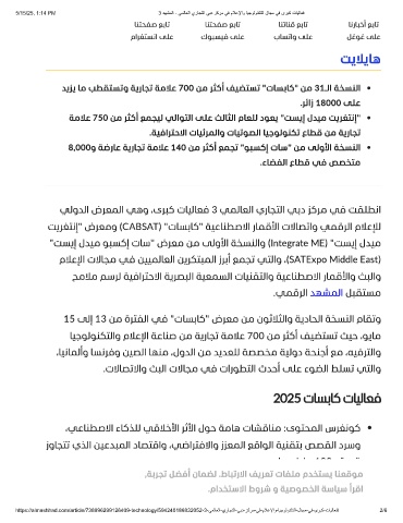 ﺖﻳﺮﻐﺘﻧإ" ضﺮﻌﻣو (CABSAT) "تﺎﺴﺑﺎﻛ" ﺔﻴﻋﺎﻨﻄﺻﻻا رﺎﻤﻗﻷا تﻻﺎﺼﺗاو ﻲﻤﻗﺮﻟا مﻼﻋﻺﻟ