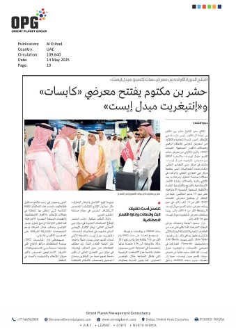 Publication: Al Etihad Country: UAE Circulation: 109,640 Date: 14 May 2025 Page: 19