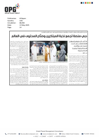 Publication: Al Bayan Country: UAE Circulation: 88,000 Date: 14 May 2025 Page: 14