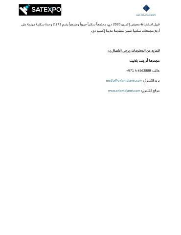 ى�ﻋ ﺔﻋزﻮﻣ ﺔﻴﻨﻜـﺳ ةﺪﺣو 2,273 ﻢـﻀﻳ ًاﺮﻫدﺰﻣو ًﺎﻳﻮﻴﺣ ًﺎﻴﻨﻜـﺳ ًﺎﻌﻤﺘﺠﻣ ،ي ﺑد 2020 ﻮﺒـﺴﻛإ ضﺮﻌﻣ ﺔﻓﺎـﻀﺘـﺳا ﻞﻴﺒﻗ