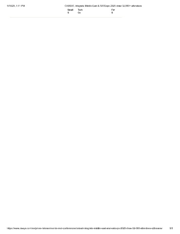 5/16/25, 1:11 PM CABSAT, Integrate Middle East & SATExpo 2025 draw 32,000+ attendees Small Tech For S Co S https://www.zawya.com/en/press-release/events-and-conferences/cabsat-integrate-middle-east-and-satexpo-2025-draw-32-000-attendees-o2bosanw 5/5