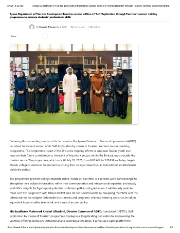 https://kuwaititribune.com/ajman-department-of-tourism-development-launches-second-edition-of-self-exploration-through-tourism-summer-training-pro… 1/2