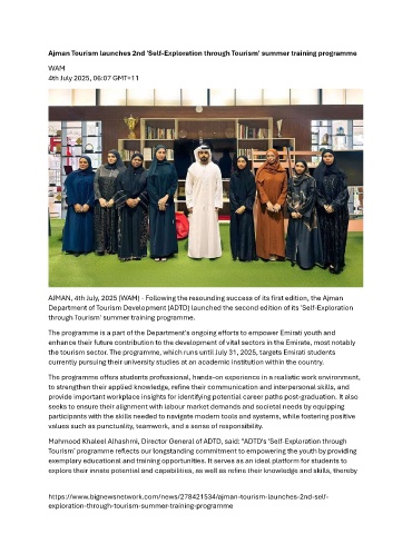Ajman Tourism launches 2nd 'Self-Exploration through Tourism' summer training programme