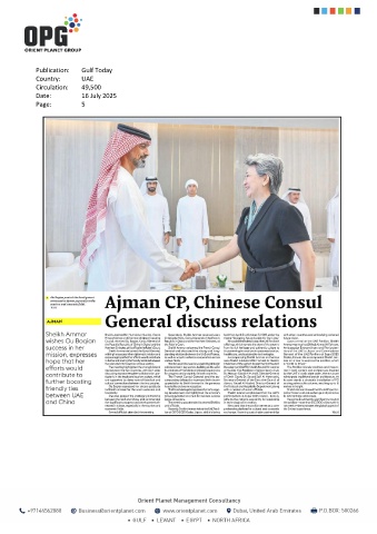 Publication: Gulf Today Country: UAE Circulation: 49,500 Date: 16 July 2025 Page: 5