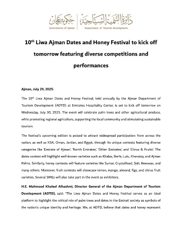 Development (ADTD), said: “The Liwa Ajman Dates and Honey Festival serves as an ideal