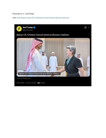 Publication: X – Gulf Today Link: Gulf Today: Ajman CP, Chinese Consul General discuss relations