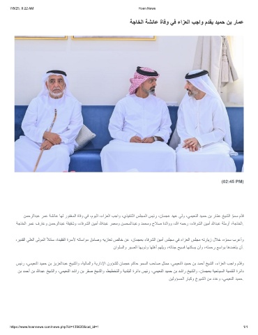 نﻣﺣرﻟادﺑﻋ رﻣﻋ ﺔﺷﺋﺎﻋ ﺎﮭﻟ روﻔﻐﻣﻟا ةﺎﻓو ﻲﻓ ،موﯾﻟا ،ءازﻌﻟا بﺟاو ،يذﯾﻔﻧﺗﻟا سﻠﺟﻣﻟا سﯾﺋر ،نﺎﻣﺟﻋ دﮭﻋ ﻲﻟو ،ﻲﻣﯾﻌﻧﻟا دﯾﻣﺣ نﺑ رﺎّﻣﻋ ﺦﯾﺷﻟا ّ وﻣﺳ مّدﻗ