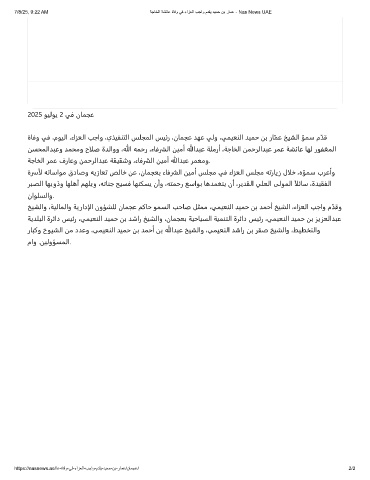 7/8/25, 9:22 AM ﺔﺟﺎﺧﻟا ﺔﺷﺋﺎﻋ ةﺎﻓو ﻲﻓ ءازﻌﻟا بﺟاو مدﻘﯾ دﯾﻣﺣ نﺑ رﺎﻣﻋ - Nas News UAE