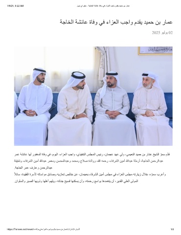 ﺮﻤﻋ ﺔﺸﺋﺎﻋ ﺎﮭﻟ رﻮﻔﻐﻤﻟا ةﺎﻓو ﻲﻓ ،مﻮﯿﻟا ،ءاﺰﻌﻟا ﺐﺟاو ،يﺬﯿﻔﻨﺘﻟا ﺲﻠﺠﻤﻟا ﺲﯿﺋر ،نﺎﻤﺠﻋ ﺪﮭﻋ ﻲﻟو ،ﻲﻤﯿﻌﻨﻟا ﺪﯿﻤﺣ ﻦﺑ رﺎّﻤﻋ ﺦﯿﺸﻟا ّ ﻮﻤﺳ مّﺪﻗ