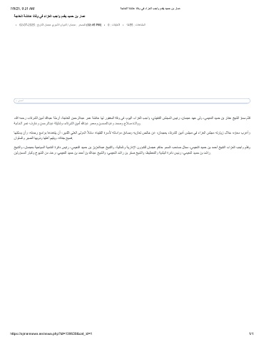،ﷲ ﮫﻤﺣر ،ءﺎﻓﺮﺸﻟا ﻦﯿﻣأ ﷲﺪﺒﻋ ﺔﻠﻣرأ ،ﺔﺟﺎﺨﻟا ﻦﻤﺣﺮﻟاﺪﺒﻋ ﺮﻤﻋ ﺔﺸﺋﺎﻋ ﺎﮭﻟ رﻮﻔﻐﻤﻟا ةﺎﻓو ﻲﻓ ،مﻮﯿﻟا ،ءاﺰﻌﻟا ﺐﺟاو ،يﺬﯿﻔﻨﺘﻟا ﺲﻠﺠﻤﻟا ﺲﯿﺋر ،نﺎﻤﺠﻋ ﺪﮭﻋ ﻲﻟو ،ﻲﻤﯿﻌﻨﻟا ﺪﯿﻤﺣ ﻦﺑ رﺎّﻤﻋ ﺦﯿﺸﻟا ّ ﻮﻤﺳ مّﺪﻗ