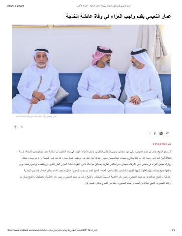 https://www.aletihad.ae/news/ﺔﺟﺎﺧﻟا-ﺔﺷﺋﺎﻋ-ةﺎﻓو-ﻲﻓ-ءازﻌﻟا-بﺟاو-مدﻘﯾ-ﻲﻣﯾﻌﻧﻟا-رﺎﻣﻋ/4587174/تارﺎﻣﻹا 1/1