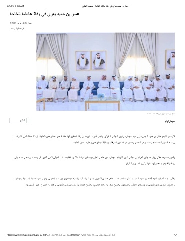 https://www.alkhaleej.ae/2025-07-02/رادﻟا-رﺎﺑﺧأ/تارﺎﻣﻹا-نﻣ-رﺎﺑﺧأ/5984601-ﺔﺟﺎﺧﻟا-ﺔﺷﺋﺎﻋ-ةﺎﻓو-ﻲﻓ-يزﻌﯾ-دﯾﻣﺣ-نﺑ-رﺎﻣﻋ 1/1