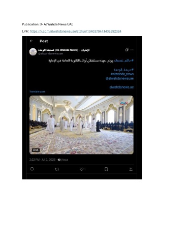 Publication: X- Al Wahda News UAE Link: https://x.com/alwahdanewsuae/status/1940370441438392384