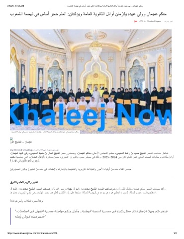 7/8/25, 8:48 AM بوﻌﺷﻟا ﺔﺿﮭﻧ ﻲﻓ سﺎﺳأ رﺟﺣ مﻠﻌﻟا :نادﻛؤﯾو ﺔﻣﺎﻌﻟا ﺔﯾوﻧﺎﺛﻟا لﺋاوأ نﺎﻣ ّ رﻛﯾ هدﮭﻋ ﻲﻟوو نﺎﻣﺟﻋ مﻛﺎﺣ