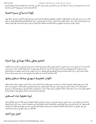 ،نﺎﻃوﻷا ءﺎﻤﻧو ،نﺎﺴنﻹا ءﺎﻨﺑ ﺎيﺴ،ﺋر اصرﻨﻋ ەرﺎبﺘﻋﺎب ،ﺔﻟوﺪﻟا ﺔيؤر ﺔﻤﻬﻣ ﺔﻧﺎكﻤب ﺤي ﻢيﻠﻌﺘﻟا نأ ، يﻌﻨﻟا ﺪﺷار ﻦﺑ ﺪيﻤﺣ ﺦﻴﺸﻟا ﻮﻤﺴﻟا ﺐﺣﺎﺻ ﺪكأو