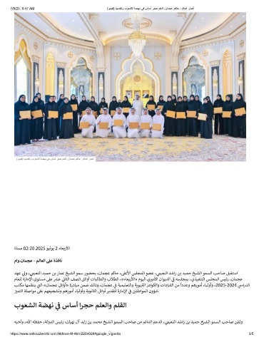 ﻤﺘﻟا ﺔﻠﺻاﻮﻣ لىﻋ ﻢﻬﻌيﺠﺸتو ﻢﻫرﻮﻣأ ءﺎيﻟوأو ﺔيوﻧﺎﺜﻟا ﻞﺋاوأ ﺮﻳﺪﻘﺘﻟ ةرﺎﻣﻹا ﻨﻃاﻮﻤﻟا نوﺆﺷ.