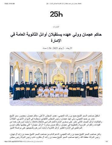 7/8/25, 8:45 AM 25 – ةرﺎﻣﻹا ﻲﻓ ﺔﻣﺎﻌﻟا ﺔﯾوﻧﺎﺛﻟا لﺋاوأ نﻼﺑﻘﺗﺳﯾ هدﮭﻋ ﻲﻟوو نﺎﻣﺟﻋ مﻛﺎﺣH