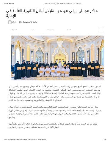 7/8/25, 8:45 AM لﯾﺎﺗﺳ برﻌﻟا – ةرﺎﻣﻹا ﻲﻓ ﺔﻣﺎﻌﻟا ﺔﯾوﻧﺎﺛﻟا لﺋاوأ نﻼﺑﻘﺗﺳﯾ هدﮭﻋ ﻲﻟوو نﺎﻣﺟﻋ مﻛﺎﺣ