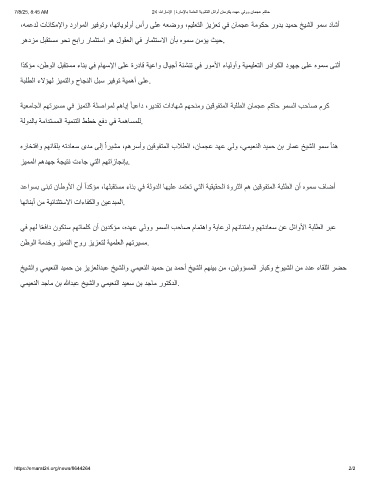هرﺎﺧﺗﻓاو مﮭﺋﺎﻘﻠﺑ ﮫﺗدﺎﻌﺳ ىدﻣ ﻰﻟإ ًارﯾﺷﻣ ،مھرﺳأو نﯾﻗوﻔﺗﻣﻟا بﻼطﻟا ،نﺎﻣﺟﻋ دﮭﻋ ﻲﻟو ،ﻲﻣﯾﻌﻧﻟا دﯾﻣﺣ نﺑ رﺎﻣﻋ ﺦﯾﺷﻟا وﻣﺳ ﺄﻧھ