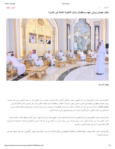 ةرﺎﻣﻹا ﻲﻓ ﺔﻣﺎﻌﻟا ﺔﯾوﻧﺎﺛﻟا لﺋاوأ نﻼﺑﻘﺗﺳﯾ هدﮭﻋ ﻲﻟوو نﺎﻣﺟﻋ مﻛﺎﺣ