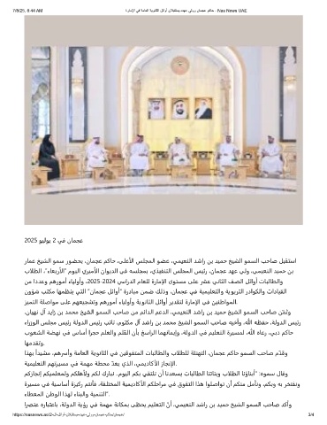 7/8/25, 8:44 AM ةرﺎﻣﻹا ﻲﻓ ﺔﻣﺎﻌﻟا ﺔﯾوﻧﺎﺛﻟا لﺋاوأ نﻼﺑﻘﺗﺳﯾ هدﮭﻋ ﻲﻟوو نﺎﻣﺟﻋ مﻛﺎﺣ - Nas News UAE
