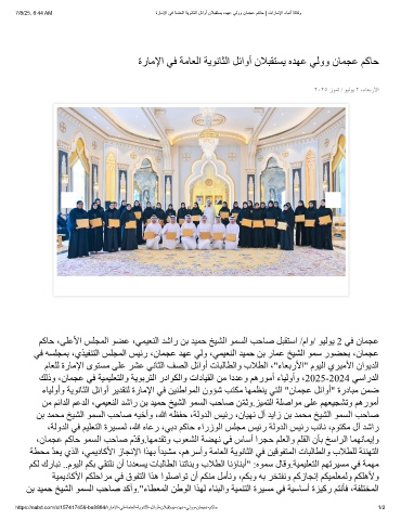 7/8/25, 8:44 AM ةرﺎﻣﻹا ﻲﻓ ﺔﻣﺎﻌﻟا ﺔﯾوﻧﺎﺛﻟا لﺋاوأ نﻼﺑﻘﺗﺳﯾ هدﮭﻋ ﻲﻟوو نﺎﻣﺟﻋ مﻛﺎﺣ | تارﺎﻣﻹا ءﺎﺑﻧأ ﺔﻟﺎﻛو