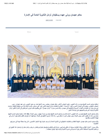 ةرﺎﻣﻹا ﻲﻓ ﺔﻣﺎﻌﻟا ﺔﯾﻮﻧﺎﺜﻟا ﻞﺋاوأ نﻼﺒﻘﺘﺴﯾ هﺪﮭﻋ ﻲﻟوو نﺎﻤﺠﻋ ﻢﻛﺎﺣ