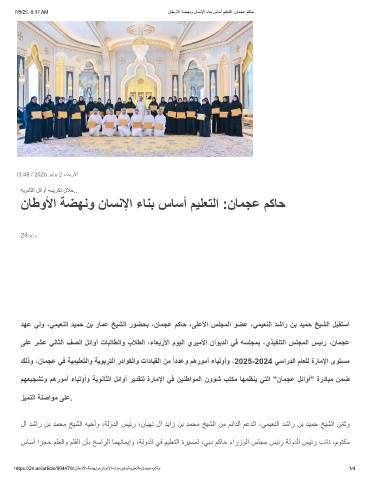 كﻟذو ،نﺎﻣﺟﻋ ﻲﻓ ﺔﯾﻣﯾﻠﻌﺗﻟاو ﺔﯾوﺑرﺗﻟا رداوﻛﻟاو تادﺎﯾﻘﻟا نﻣ ُاددﻋو مھروﻣأ ءﺎﯾﻟوأو ،2025-2024 ﻲﺳاردﻟا مﺎﻌﻠﻟ ةرﺎﻣﻹا ىوﺗﺳﻣ