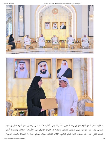 ﺔيوبرتﻟا رداوكﻟاو تادﺎيقﻟا نﻣ اددﻋو مﻫروﻣأ ءﺎيﻟوأو ،2025-2024 ﻲﺳاردﻟا مﺎﻌﻠﻟ ةرﺎﻣﻹا ى وتسﻣ ﻰﻠﻋ رشﻋ ﻲﻧﺎثﻟا ﻒصﻟا
