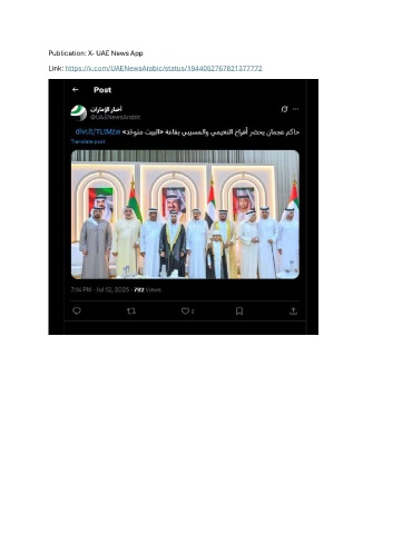 Publication: X- UAE News App Link: https://x.com/UAENewsArabic/status/1944052767821377772
