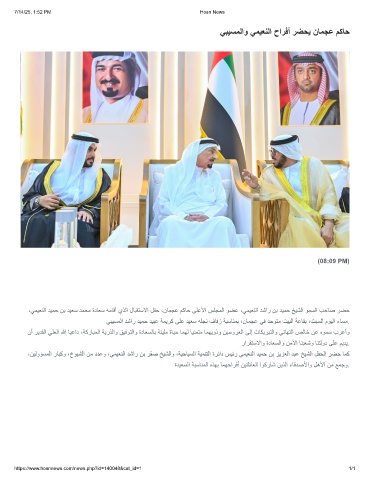 ،ﻲﻣﯾﻌﻧﻟا دﯾﻣﺣ نﺑ دﯾﻌﺳ دﻣﺣﻣ ةدﺎﻌﺳ ﮫﻣﺎﻗأ يذﻟا لﺎﺑﻘﺗﺳﻻا لﻔﺣ ،نﺎﻣﺟﻋ مﻛﺎﺣ ﻰﻠﻋﻷا سﻠﺟﻣﻟا وﺿﻋ ،ﻲﻣﯾﻌﻧﻟا دﺷار نﺑ دﯾﻣﺣ ﺦﯾﺷﻟا وﻣﺳﻟا بﺣﺎﺻ رﺿﺣ