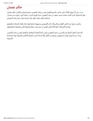 ،نﺎﻤﺠﻋ ﻢﻛﺎﺣ ﻰﻠﻋألا ﺲﻠﺠﻤﻟا ﻮﻀﻋ ،ﻲﻤﻴﻌﻨﻟا ﺪﺷار ﻦﺑ ﺪﻴﻤﺣ ﺦﻴﺸﻟا ﻮﻤﺴﻟا ﺐﺣﺎﺻ رضﺣ :2025 ﻮﻴﻟﻮﻳ 12 ﻲﻓ نﺎﻤﺠﻋ
