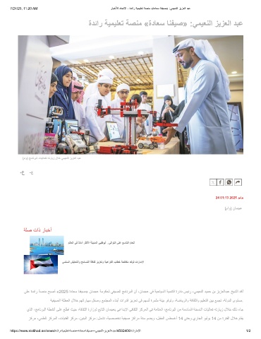 7/24/25, 11:20 AM رﺎﺑﺧﻸﻟ دﺎﺣﺗﻻا - ةدﺋار ﺔﯾﻣﯾﻠﻌﺗ ﺔﺻﻧﻣ «ةدﺎﻌﺳ ﺎﻧﻔﯾﺻ» :ﻲﻣﯾﻌﻧﻟا زﯾزﻌﻟا دﺑﻋ