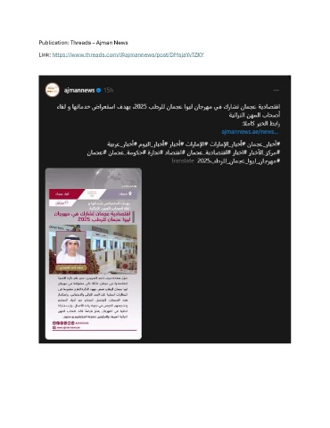 Publication: Threads – Ajman News Link: https://www.threads.com/@ajmannews/post/DMsjaYvTZKY