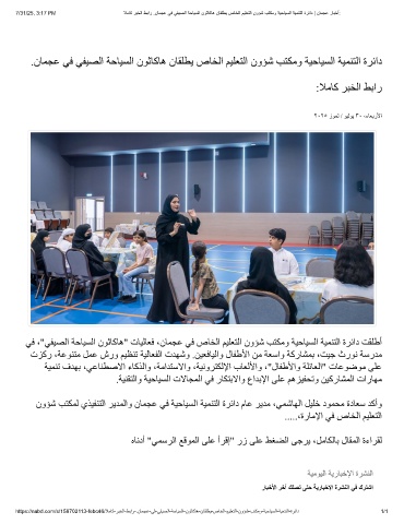 7/31/25, 3:17 PM ﻼﻣﺎﻛ رﺑﺧﻟا طﺑار .نﺎﻣﺟﻋ ﻲﻓ ﻲﻔﯾﺻﻟا ﺔﺣﺎﯾﺳﻟا نوﺛﺎﻛﺎھ نﺎﻘﻠطﯾ صﺎﺧﻟا مﯾﻠﻌﺗﻟا نوؤﺷ بﺗﻛﻣو ﺔﯾﺣﺎﯾﺳﻟا ﺔﯾﻣﻧﺗﻟا ةرﺋاد | نﺎﻣﺟﻋ رﺎﺑﺧأ: