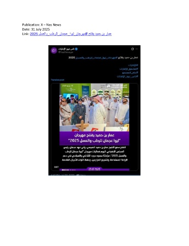 Publication: X – Nas News Date: 31 July 2025 Link: 2025 لسعلاو_بطرلل_نامجع_اويل_ناجرهم# حتتفي ديمح نب رامع