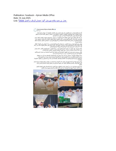 Publication: Facebook – Ajman Media Office Date: 31 July 2025 Link: "2025 لسعلاو بطرلل نامجع اويل" ناجرهم حتتفي ديمح نب رامع