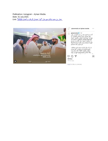 Publication: Instagram – Ajman Media Date: 31 July 2025 Link: "2025 لسعلاو بطرلل نامجع اويل" ناجرهم حتتفي ديمح نب رامع