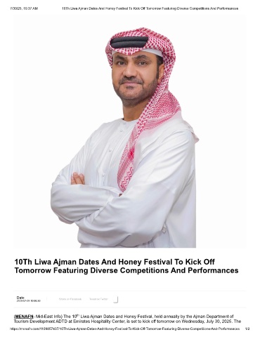 https://menafn.com/1109857437/10Th-Liwa-Ajman-Dates-And-Honey-Festival-To-Kick-Off-Tomorrow-Featuring-Diverse-Competitions-And-Performances  1/2