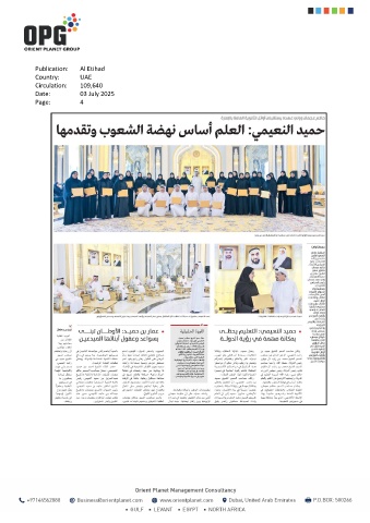 Publication: Al Etihad Country: UAE Circulation: 109,640 Date: 03 July 2025 Page: 4