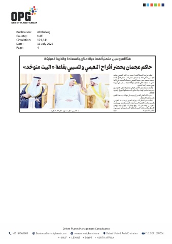 Publication: Al Khaleej Country: UAE Circulation: 121,141 Date: 13 July 2025 Page: 4