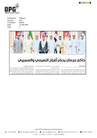 Publication: Al Bayan Country: UAE Circulation: 88,000 Date: 13 July 2025 Page: 4