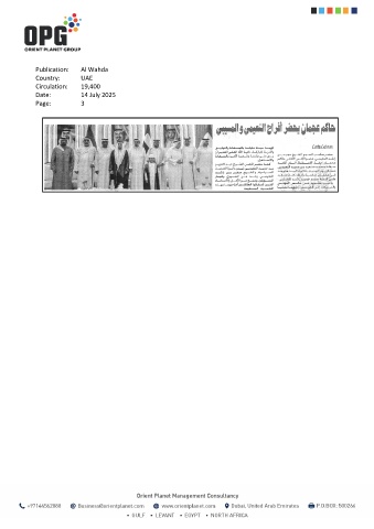 Publication: Al Wahda Country: UAE Circulation: 19,400 Date: 14 July 2025 Page: 3