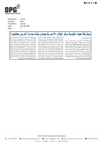 Publication: Al Fajr Country: UAE Circulation: 34,596 Date: 19 July 2025 Page: 2