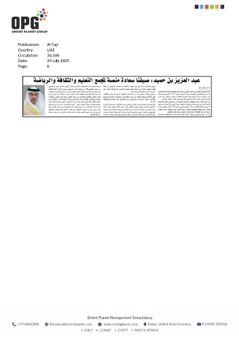 Publication: Al Fajr Country: UAE Circulation: 34,596 Date: 24 July 2025 Page: 6