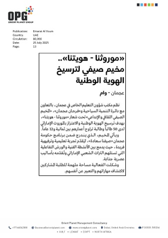 Publication: Emarat Al Youm Country: UAE Circulation: 80,000 Date: 25 July 2025 Page: 13